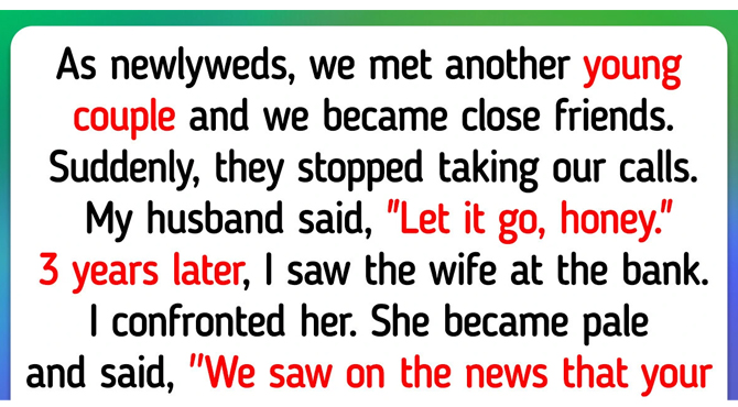 - As newlyweds, we met another young couple, and we became close friends. Then, suddenly, they stopped taking our calls. My husband said, “Let it go, honey.” 3 years later, I saw the wife at the bank. I confronted her. She became pale and said, “We saw on the news that your husband had robbed his employer. We didn’t want to be associated with you anymore.”