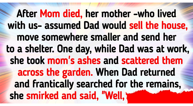 After Mom passed away, her mom, who lived with us, assumed Dad would sell the house, move somewhere smaller and send her to a shelter. One day, while Dad was at work, she took my mom’s ashes and scattered them all over the garden. When Dad returned home and frantically searched for the remains, she smirked and said, “Well, now you can’t leave here, and you can’t make me leave.”