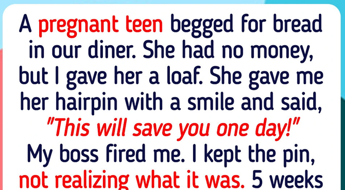 A pregnant teen begged for bread in our diner. She had no money, but I gave her a loaf. She gave me her hairpin with a smile and said, “This will save you one day!”
