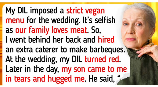 My future daughter-in-law imposed a strictly vegan menu for their wedding. I think it’s very selfish of her given that our side of the family loves meat. So, I went behind her back and hired an additional caterer to make cutlets and barbecues because I wanted everyone to have a good time.