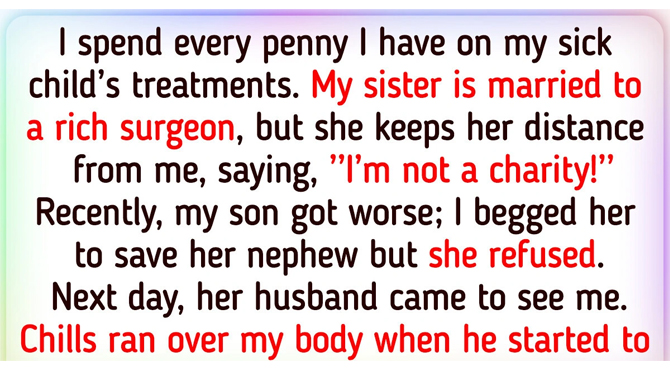 Next day, her husband came to see me. Chills ran over my body when he started to tell me how important family is and not to hold a grudge against my sister. Just as I was about to tell him that my sister didn’t deserve any kindness, he handed me an envelope with hundreds and hundreds of dollar bills. He said that my sister didn’t know about this, but that he was going to stand by me to save my son no matter what.