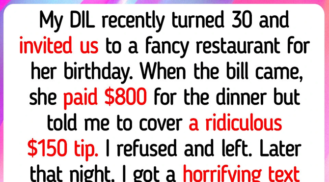 I was stunned. Over a tip? Now my phone’s gone quiet. My DIL won’t text back. My son is furious. Apparently, she feels that I was supposed to cover the tip because I didn’t get her a present, which is so strange to me.