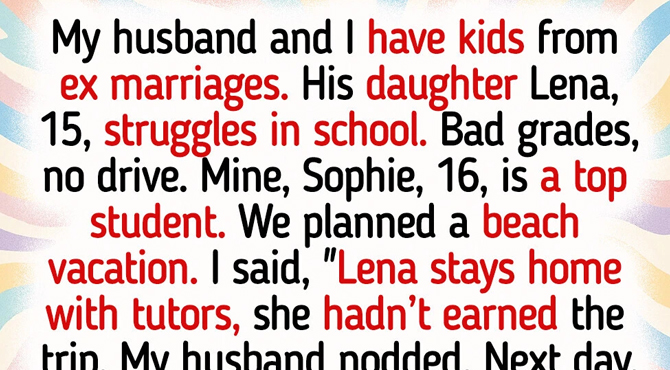 This summer, we planned a beach vacation. Tickets booked, hotel paid. But as Lena’s grades kept slipping, I made a hard decision. I told her she wouldn’t be coming. Instead, she’d stay home, focus on schoolwork, and work with a private tutor I hired out of pocket. I genuinely thought this was a wake-up call she needed. Her father didn’t protest. He just nodded and said, “Maybe it’s for the best.”
