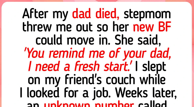 Then I got a call from an unknown number. It was a woman. She said, “I knew your father. He helped me when I had nothing. I just found out what happened to you.” She offered me a room, helped me find work, and treated me like family. A stranger. My dad helped her fifteen years ago and never mentioned it. His kindness came back for me when I needed it most.