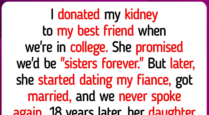 I donated my kidney to my best friend when we were in college. She promised we’d be “sisters forever.” But later, she started dating my fiancé, got married, and we never spoke again. 18 years later, her daughter showed up at my office with a college scholarship application, asking me to be her reference because her mother told her I was the most selfless person she’d ever known.